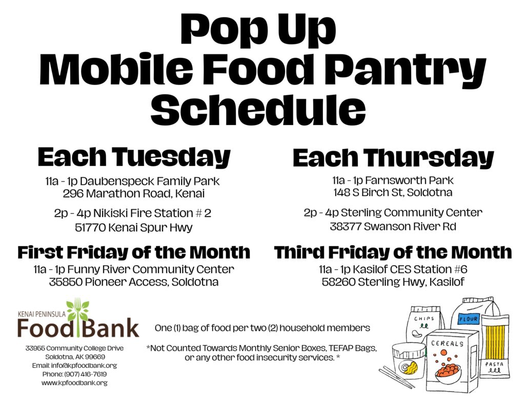 Every day, our partners, donors, and volunteers help to change that for thousands of people on the Kenai Peninsula by enabling us to source, and distribute thousands of pounds of food per month through our programs.